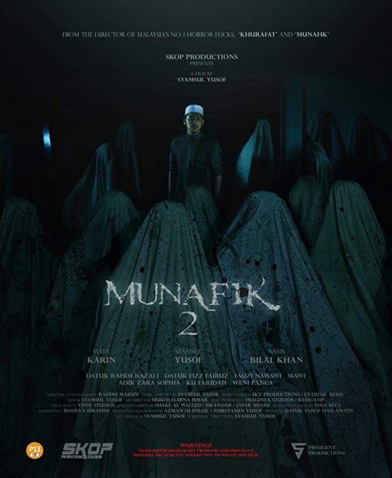 Munafik 2 ialah sebuah filem seram Malaysia 2018 arahan Syamsul Yusof dan merupakan kesinambungan daripada filem Munafik yang ditayangkan pada 2016 dan dibintangi oleh Syamsul sendiri sebagai Ustaz Adam Fizz FairuzMaya Karin Nasir Bilal Khan Fauzi Nawawi Mawi Rahim Razali dan pelakon Indonesia Weni Panca. Biarlah Syamsul dan Puteri Sarah sendiri yang beri kenyataan sebab saya tak boleh nak beri komen. 17082018 Barisan pelakon KL Gangster Underworld.